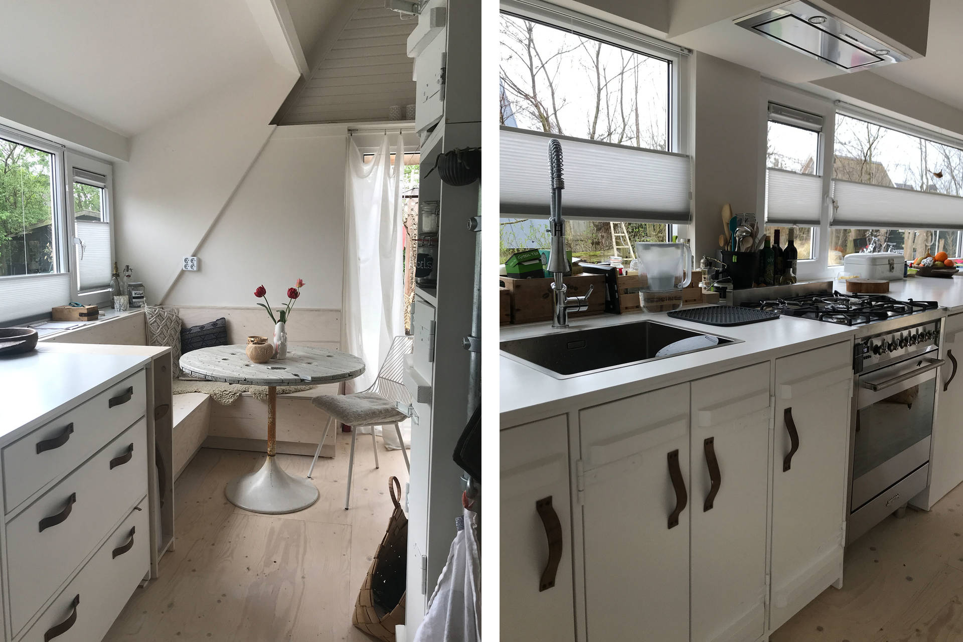 Die offene Küche ist komplett ausgestattet mit 4-Platten-Gasherd, elektrischem Backofen, Geschirrspüler, Kühlschrank mit Gefrierfach, Nespresso-Maschine und Filterkaffeemaschine. An der gemütlichen Essecke mit Eckbank ist Platz für 5 Personen.