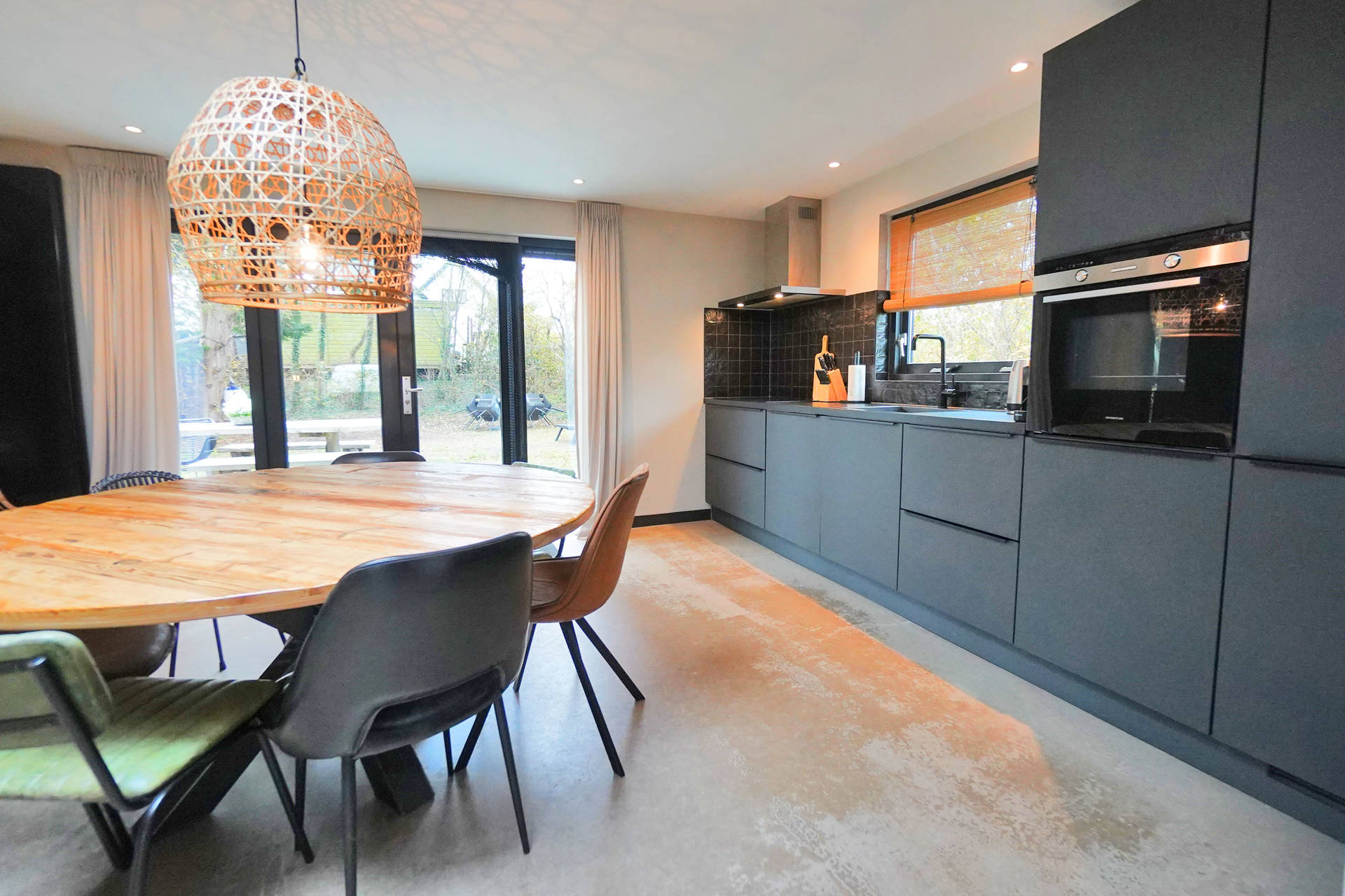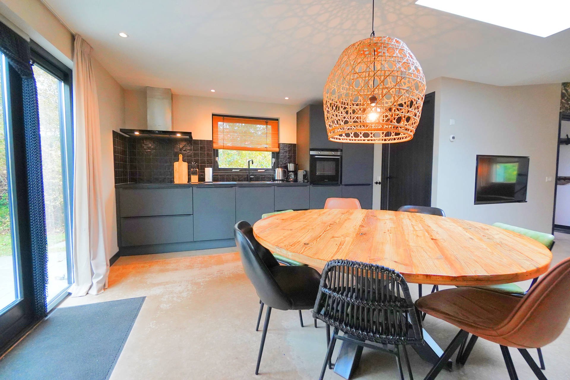 Die moderne Küche ist vollständig ausgestattet mit Backofen, Geschirrspüler, Kühlschrank, Gefrierfach, Microwelle, Nespresso- und Filterkaffeemaschine – alles, was Sie für entspannte Kochabende mit Familie oder Freunden benötigen.