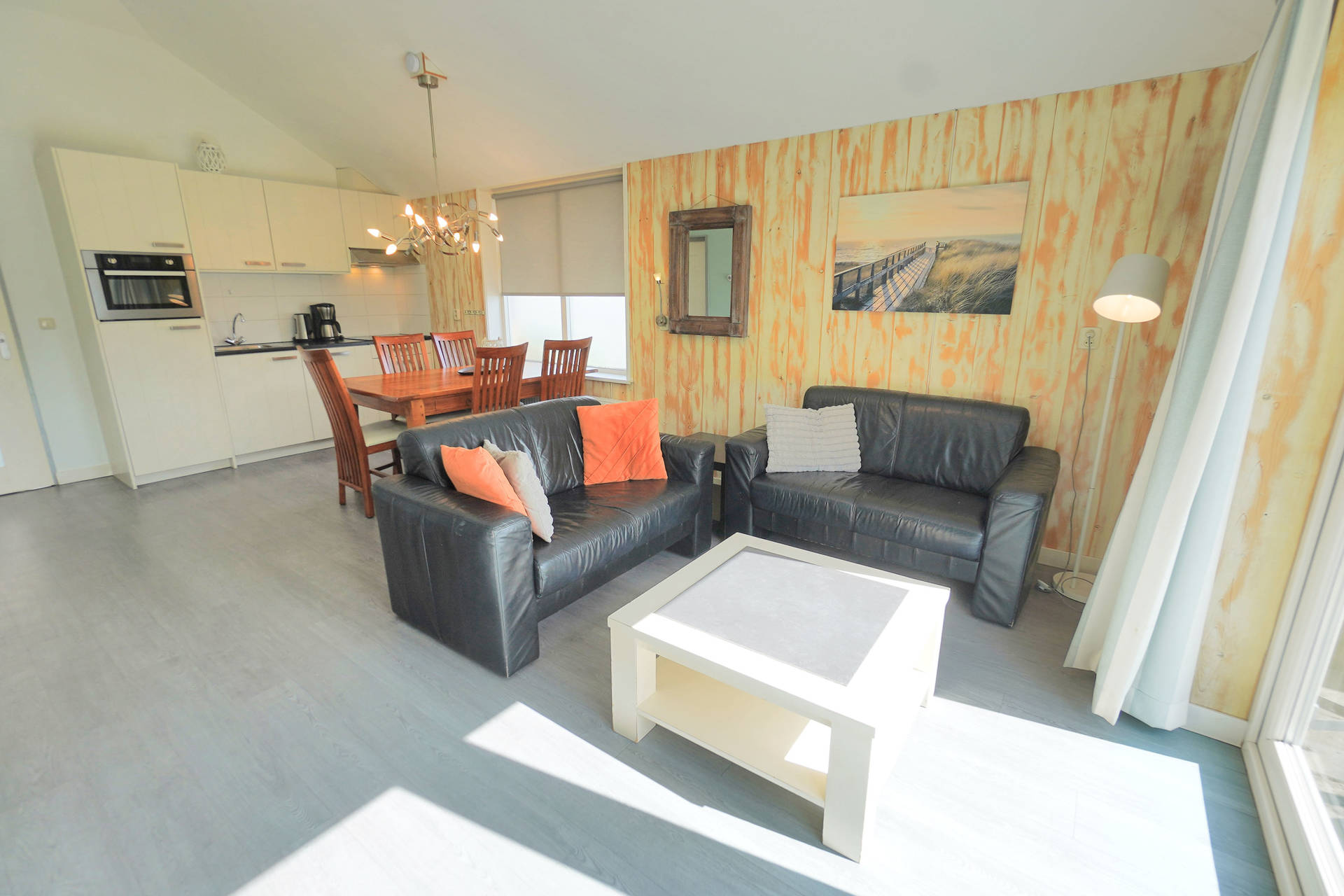 Sie können vom Schlafzimmerfenster aus die tosenden Wellen und das Geschrei der Seemöven hören. Das Ferienhaus Seinpost 7, ein hübscher, moderner Bungalow, liegt direkt hinter den Dünen von Callantsoog. Durch die hohen Decken und die angenehm frischen Farben bietet sich ihnen hier ein weitläufig-wirkendes Haus.