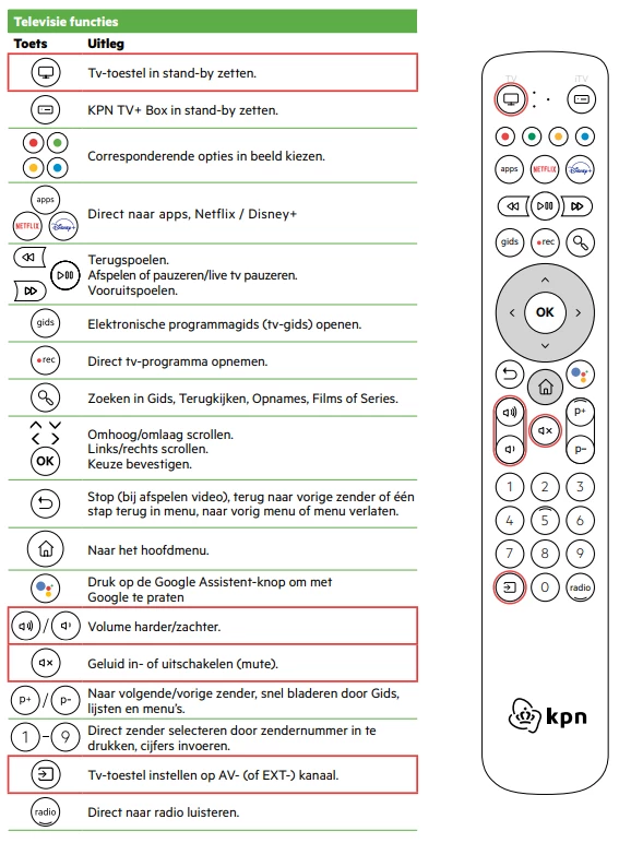 Danach benutzen Sie nur noch die weiße KPN-Fernbedienung, um Sender zu wechseln oder die Lautstärke anzupassen. Die TV-Fernbedienung benötigen Sie dann nicht mehr.