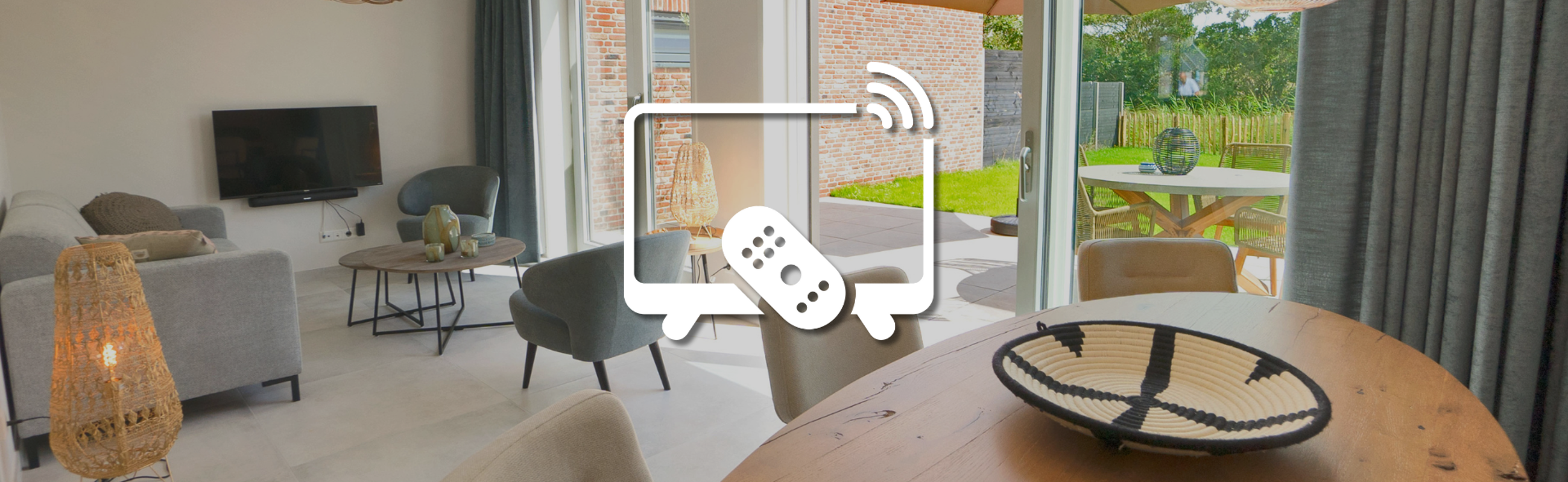 In diesem Ferienhaus steht ein Fernseher mit einer Ziggo-Box (Next Mini). Über diese kleine schwarze Box werden die TV-Sender empfangen.